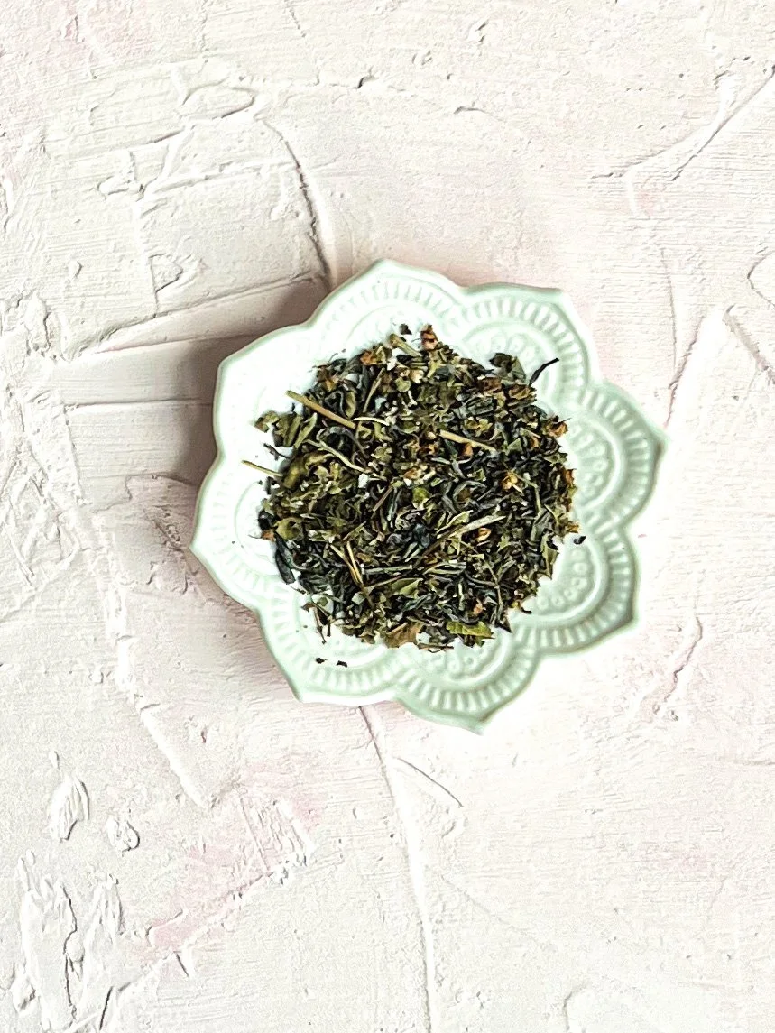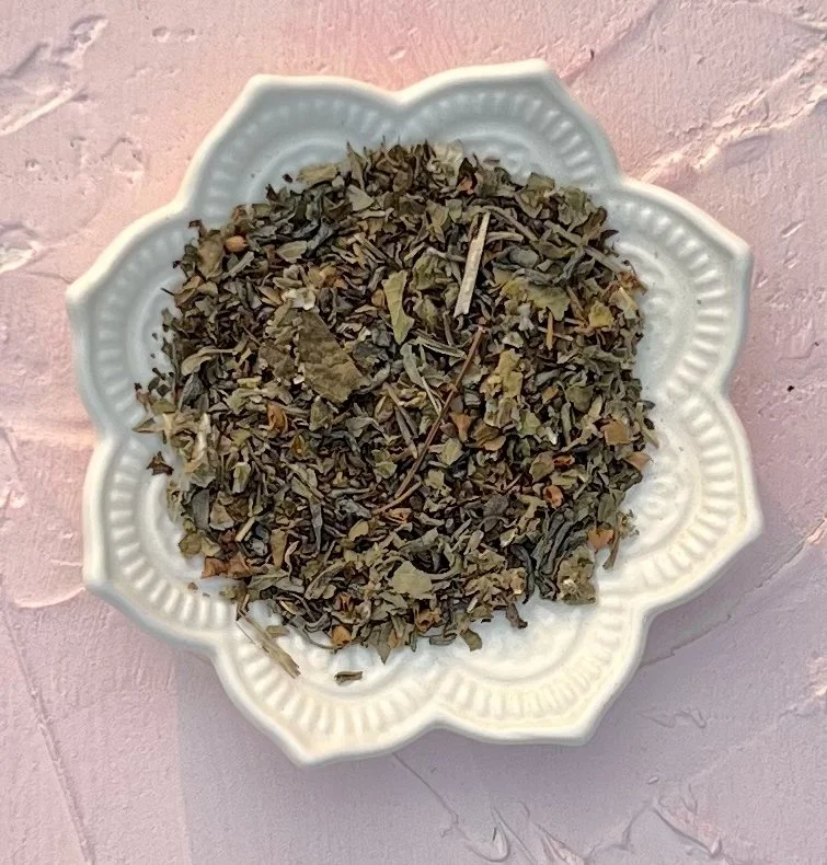 Organic Tulsi Tea, Chunmee Green Tea, Organic Lemon Balm , Organic Raspberry Leaf